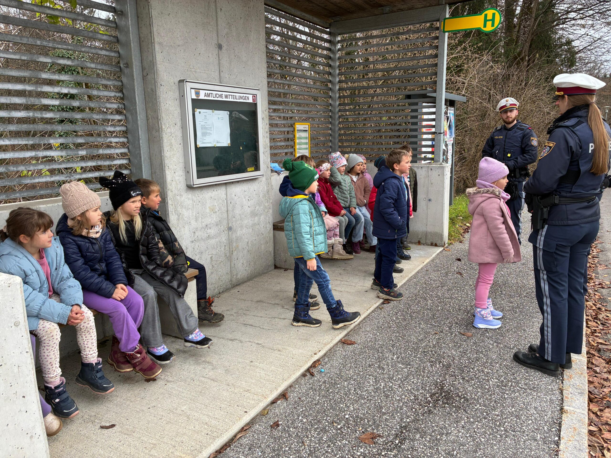 Die Schülerinnen und Schüler der 1. Klasse hatten Besuch von der Polizei Velden. In der Verkehrserziehung lernten die Kinder zunächst, wie man sich für den Schulweg richtig kleidet und wie man sich auf der Straße verhält. Das Erlernte wurde dann noch beim Überqueren der Straße geübt. Otroci prvega razreda so imeli prometno vzgojo. S policaji so pravilno prečkali cesto!
