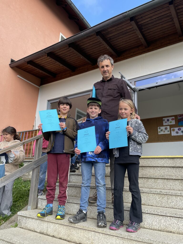 Einige Kinder der 3. und 4. Klassen haben erfolgreich an dem Wettbewerb „Känguru der Mathematik“ teilgenommen. Sensationell abgeschnitten haben zwei helle Köpfe, die somit unter den Top-Platzierten des Landes Kärnten sind: Raphael Tegelhofer (6. Platz) und Valentin Schaller (3. Platz). Wir gratulieren zu diesem tollen Erfolg.