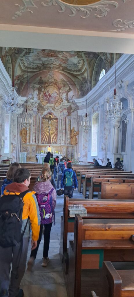 Die Klassen 3a und 3b unternahmen gemeinsam einen spannenden Ausflug zum Kloster Wernberg. Dort erhielten wir interessante Einblicke in das Leben im Kloster. Zu Beginn besuchten wir die beeindruckende Klosterkirche, in der wir viel über ihre Geschichte und Bedeutung erfuhren. Die ruhige Atmosphäre und die schöne Gestaltung machten diesen Ort besonders eindrucksvoll. Anschließend führte uns der Rundgang durch das Kloster, bei dem wir mehr über den Alltag der dort lebenden Ordensgemeinschaft kennenlernten. Wir erfuhren, wie die Menschen im Kloster leben, arbeiten und ihren Glauben im Alltag umsetzen. Ein besonderes Highlight war der Besuch des Kräutergartens. Dort konnten wir viele verschiedene Heil- und Küchenkräuter entdecken. Wir lernten, wofür sie verwendet werden und wie sie wachsen. Einige Düfte waren besonders intensiv und interessant. Der Ausflug war für alle ein lehrreiches und schönes Erlebnis. Wir konnten viel Neues entdecken und hatten gemeinsam eine tolle Zeit.
